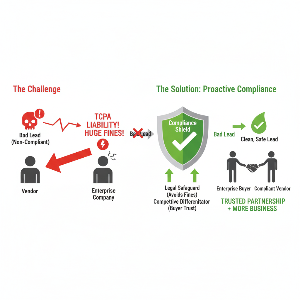 The challenge compounds when enterprises buy leads from vendors. Even if your systems are compliant, a single bad lead from a vendor exposes your company—not the vendor—to TCPA liability.